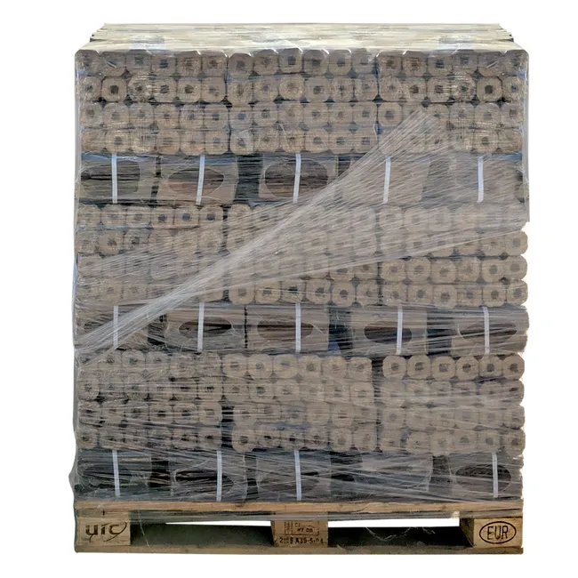 Palet de briquetas de madera de 890 kg. Transporte incluido a pie de vehículo, exclusivamente en Península. Este producto no contiene sustancias peligrosas para las personas o el medio ambiente.